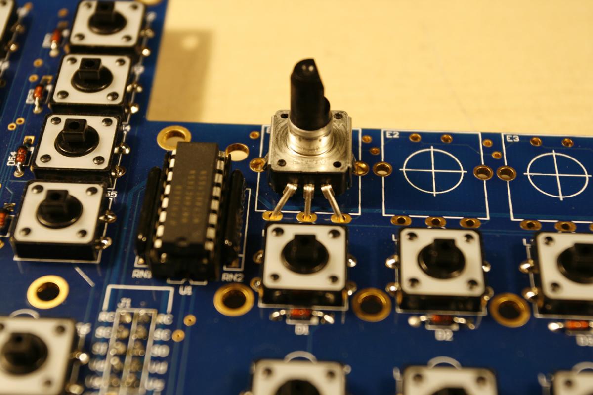 - These encoders are a bit smaller, allowing us to “top-solder” the datawheel encoder. This is not advisable with the 16mm encoders, where the datawheel encoder needs to be soldered to the underside of the PCB, otherwise the big datawheel “dial” will be elevated too much above the frontpanel.