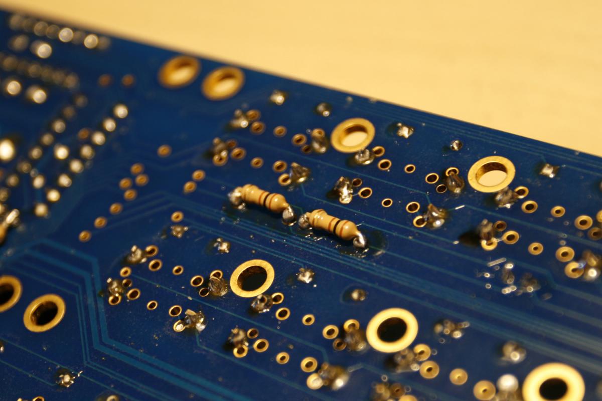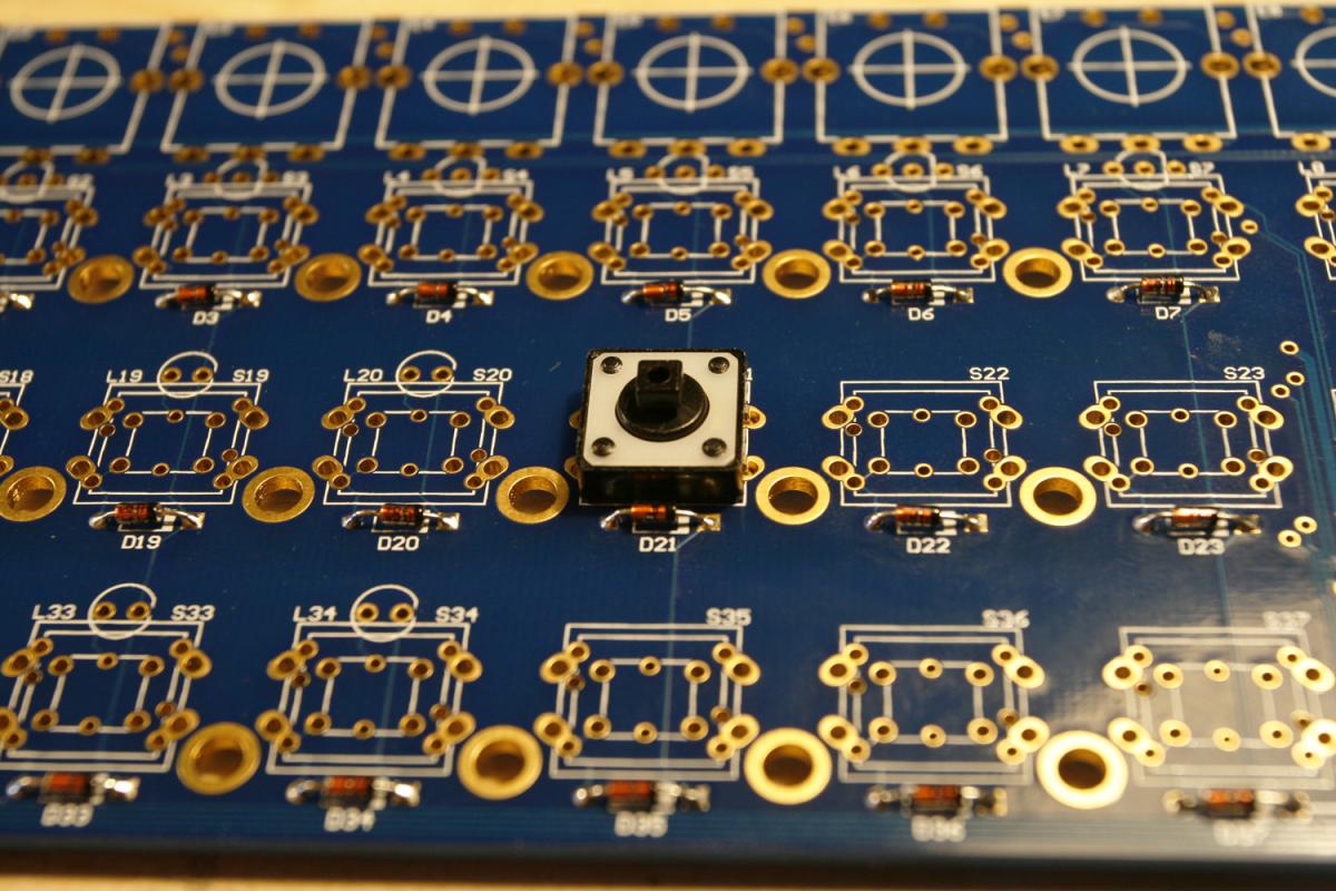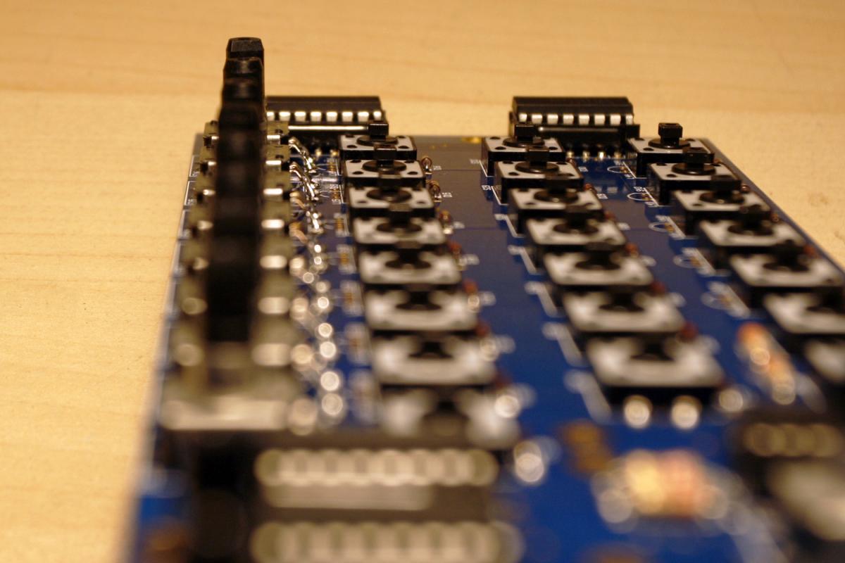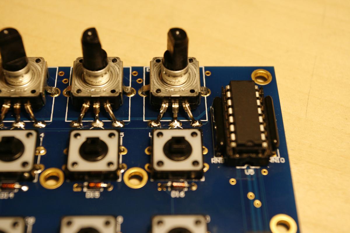 * After installing an encoder, check its alignment and also make sure, that the encoder base is pressed flat to the PCB. When done, solder the backside (3 encoder pins, 2 push pins and 2 fastener pins).