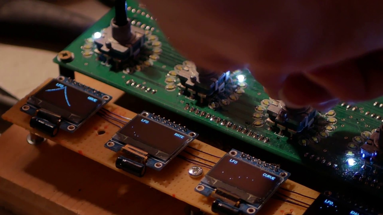 I have made now, a LFO (UP/DOWN Ramp & Triangle), now i need to add a logaritmic ammount to get CURVES/SINEs on the LFO Straight Lines, i want to do this with a Encoder.