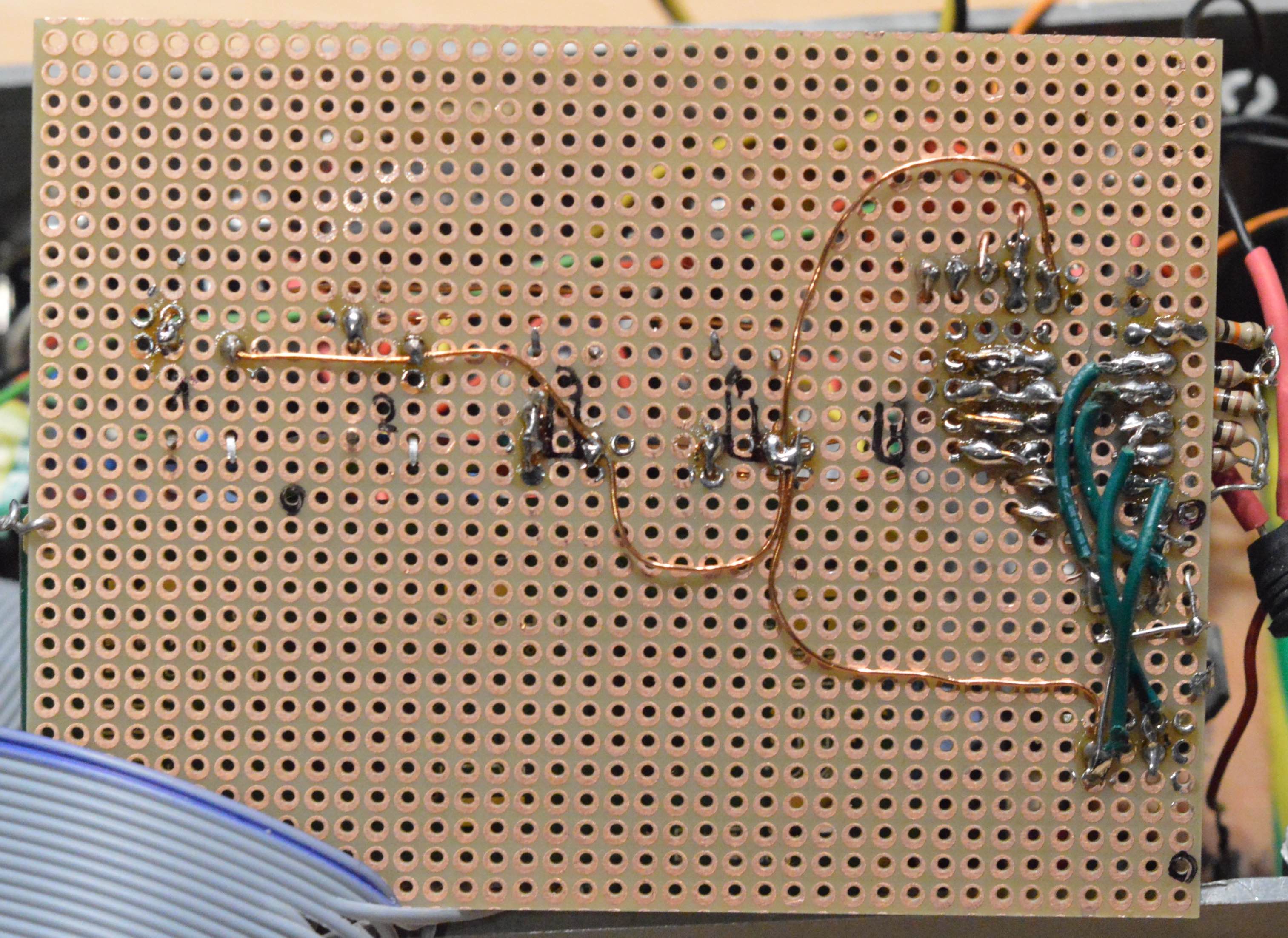 One Button had a strange behaviour, so I disconnected it, nothing changed. Strange behaviour was this: when I hit the button the voltage would go low, but then slowly up again, albeit beeing still pressed.
