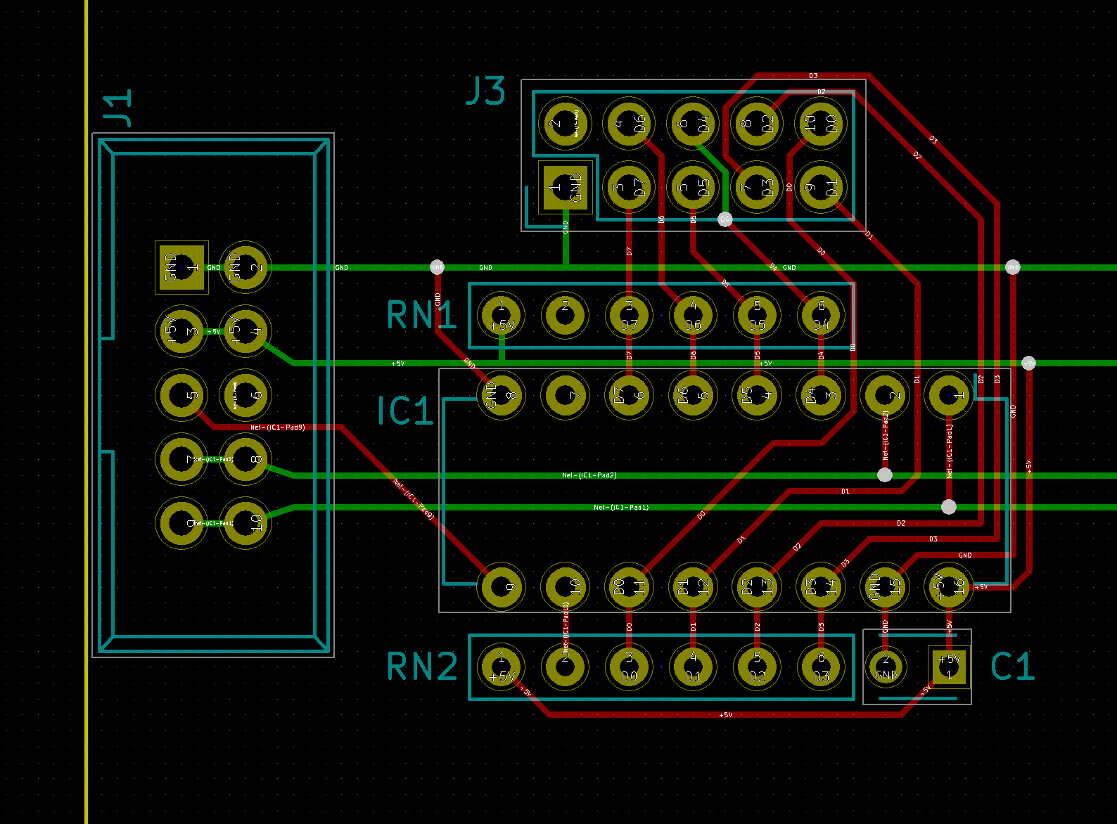 Here my first try of my own DINX4 module in Kicad. Please consider that i don’t have any experience in this. I’m not sure especially with the D0-D7 to IC1 tracks?