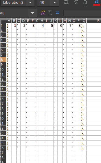 {‘C’,‘V’,’ ‘,’ ‘,’ ‘,’ ‘,’ ‘,’ ‘},
