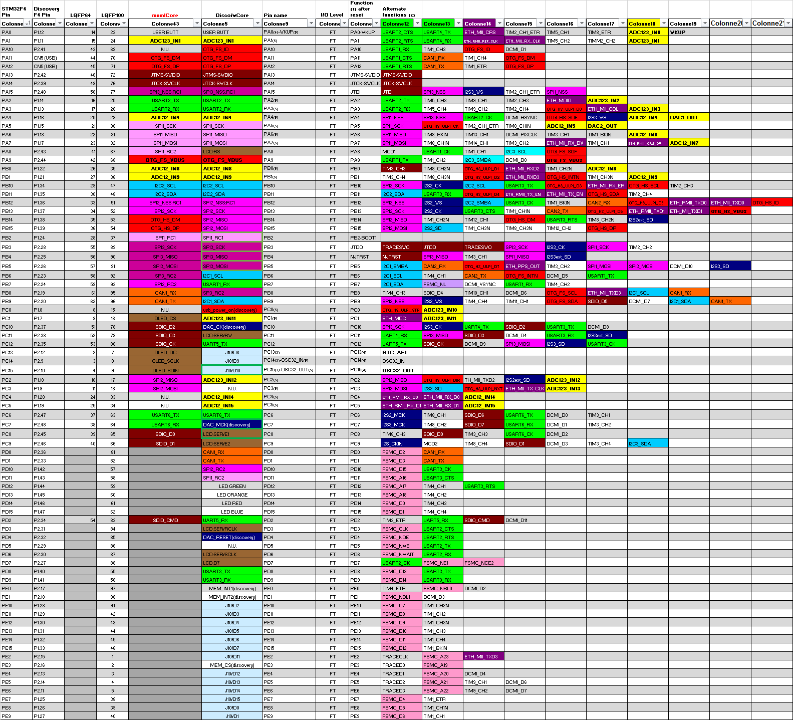 Here I tried to map the pin of a STM32F405RG LQFP64 to the needed MIOS32 functions: