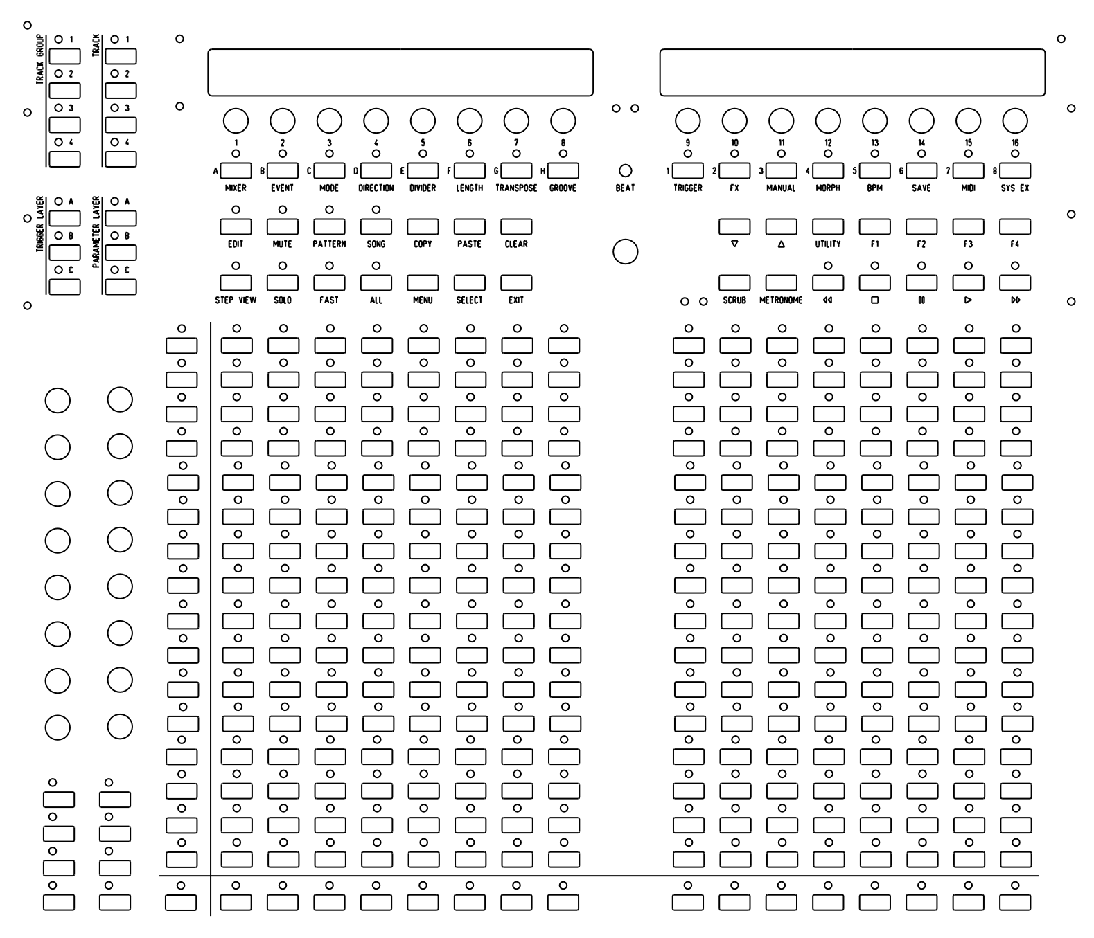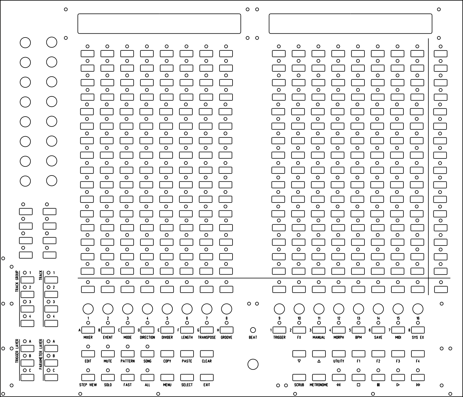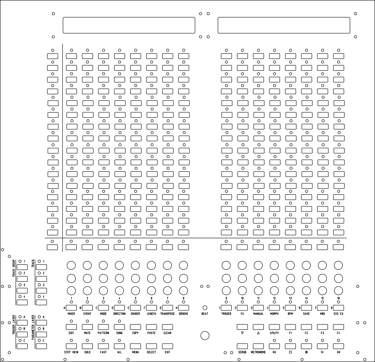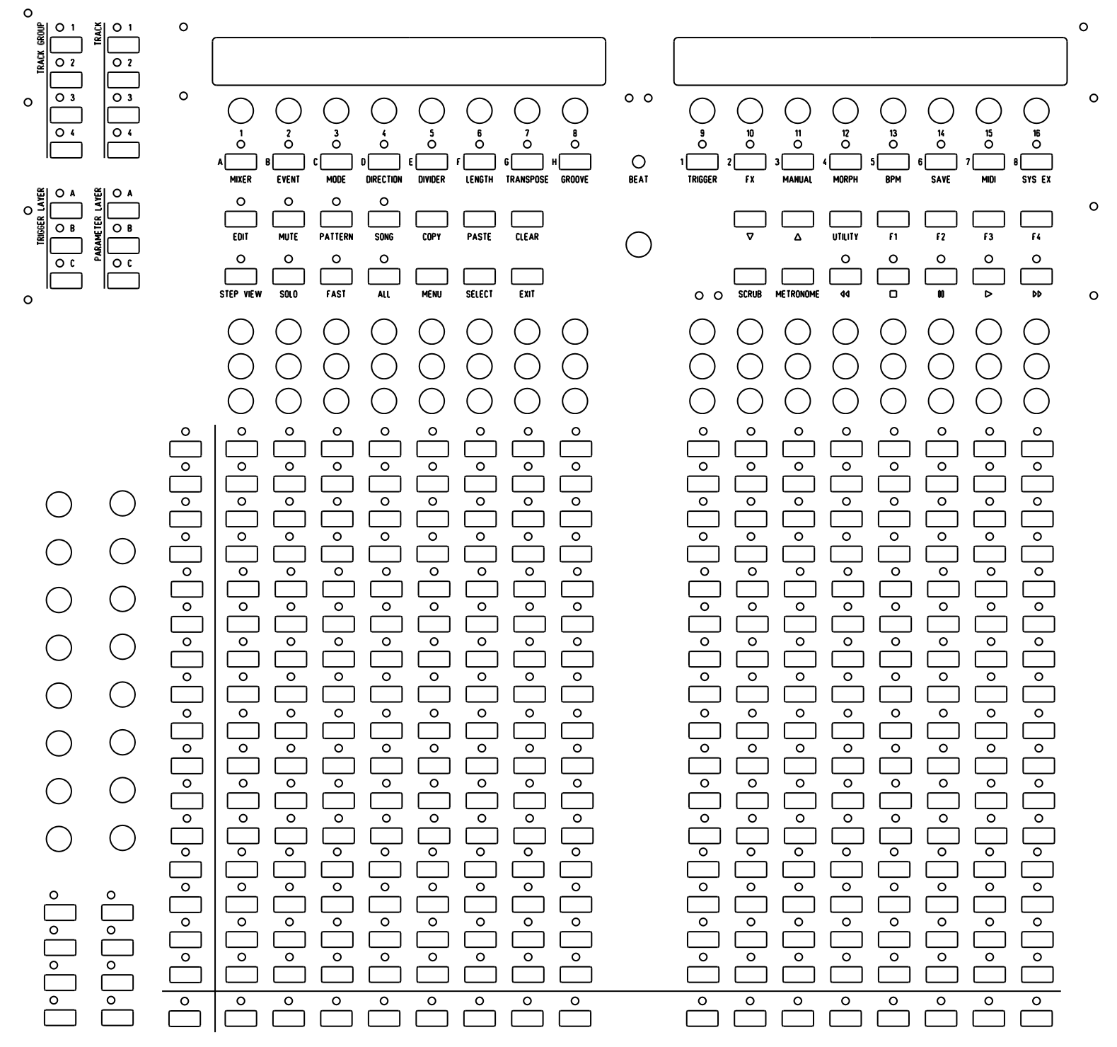 The 16 “extra column” and 16 “extra row” (I haven’t found a better name yet) buttons/LEDs are missing.