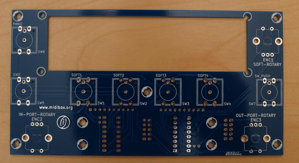 as a by-product of my latest project, the MIDIbox Matrix (a MIDI router with up to 56 in- and out-ports), I have created a PCB for the Standard Control Surface or SCS. This little board assumes that you are using a 2x24 character LCD and 4 items per menu page. This is slightly more character space per menu entry than what TK is using, however the code is fully configurable to handle this. Personally, I find the 5 available characters per menu item much more comfortable and less cryptic than lower character counts.
