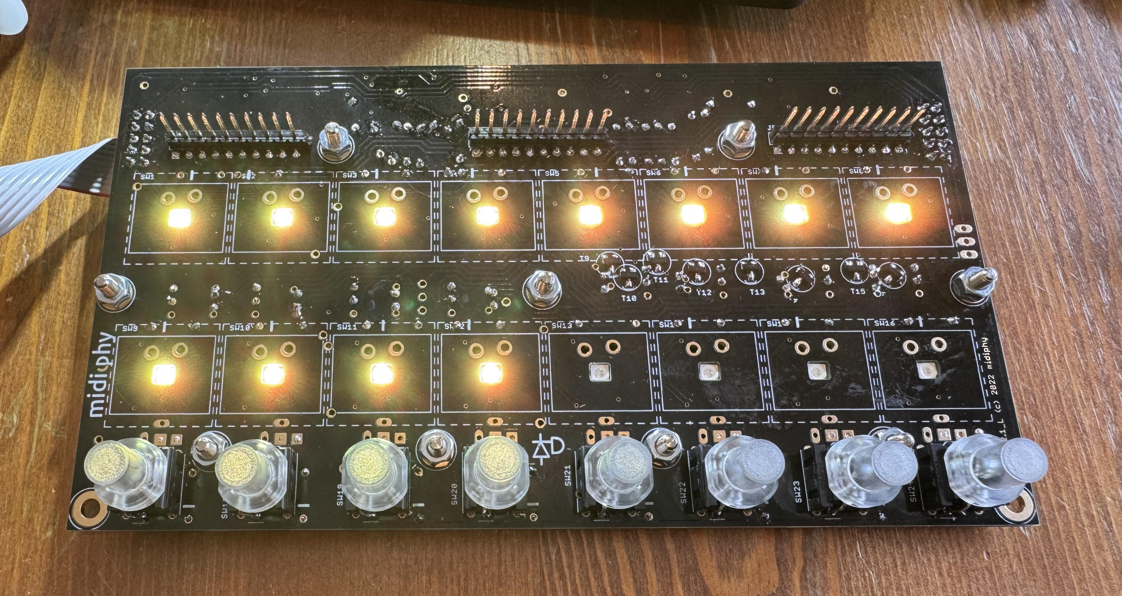 Reflowed the ttasnsistors on the top side and now I am back to 12 LEDs on. I’m assuming the LEDs shouldn’t be on, but otherwise that feels like an improvement as it means I get mattias switch events for 12 of 16. I’m also getting events for depresses on the right 4 encoders although they seem a bit random in the actual event details.
