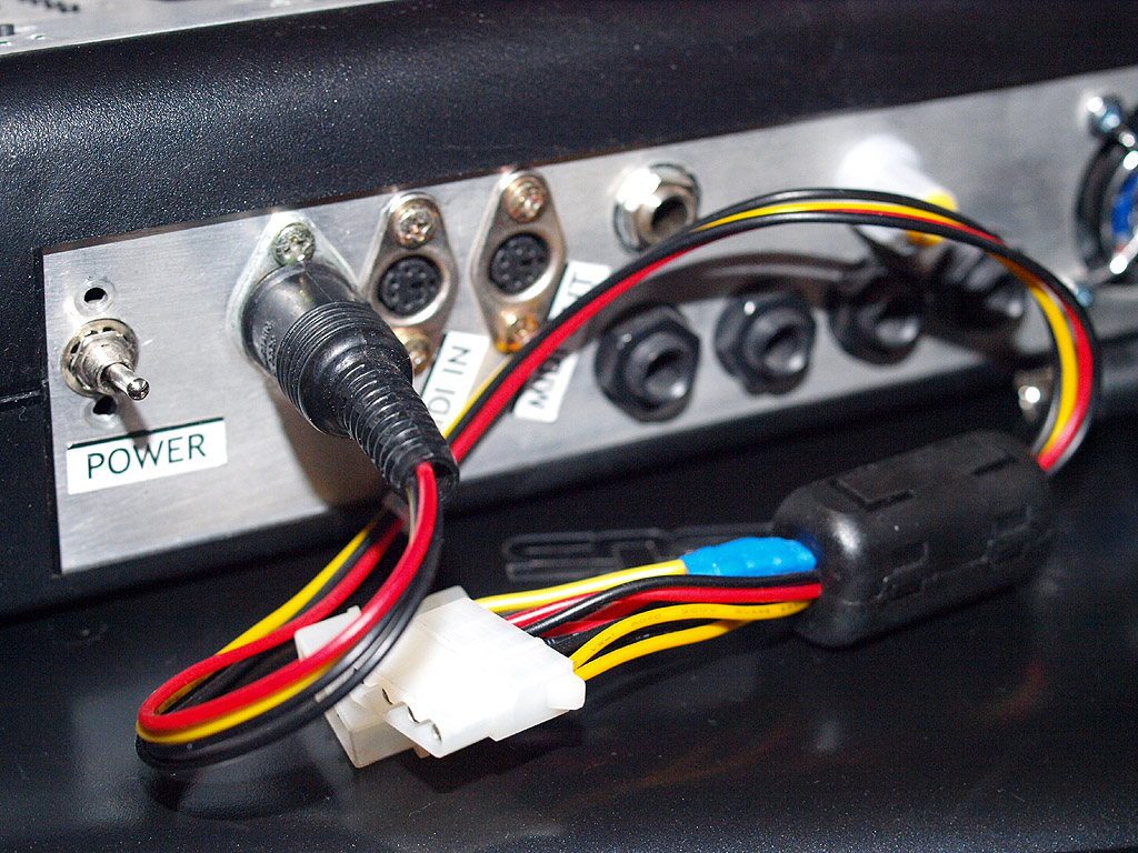 Back panel is not standard as it was problems to find the power switch and MIDI sockets, so i used mini DIN sockets with Creative Labs adapters from old Audigy 2 ZS Platinum.
