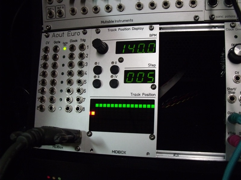 So this is the result: The way this is hooked up is My SEQV4 hooked up to the Aout Euro module via D-Sub, the euro module is powered by the eurorack power and has a SRIO out connection to the TPD. 5V is generated by the Aout Euro